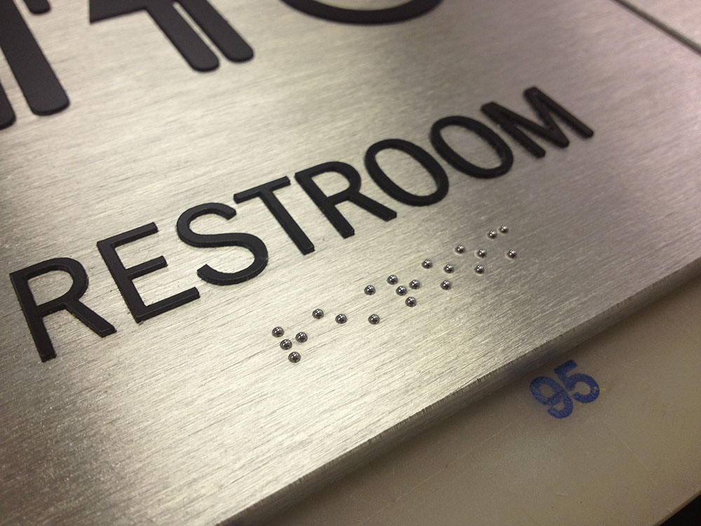 Solid Aluminum ADA Signs, Metal Braille Balls