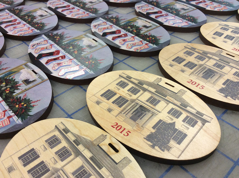 Laser Cut Quilted Maple for Custom Ornaments